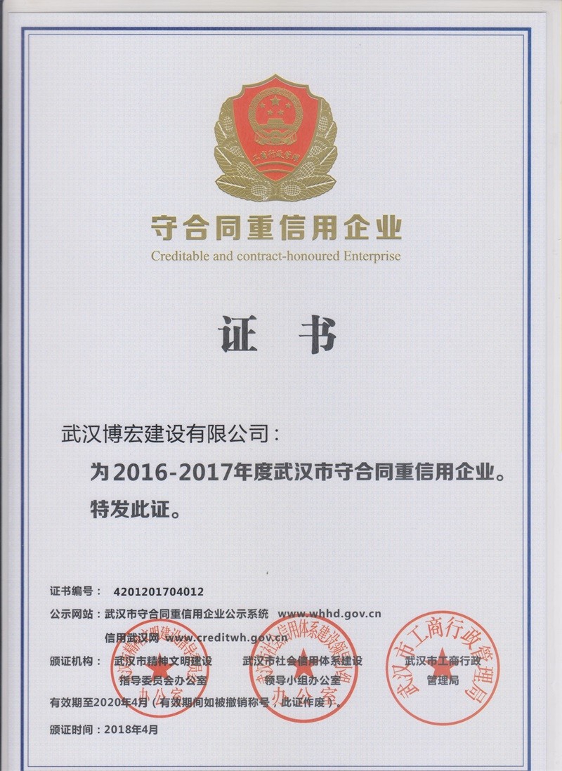 2016-2017年度守合同重信用企業(yè)