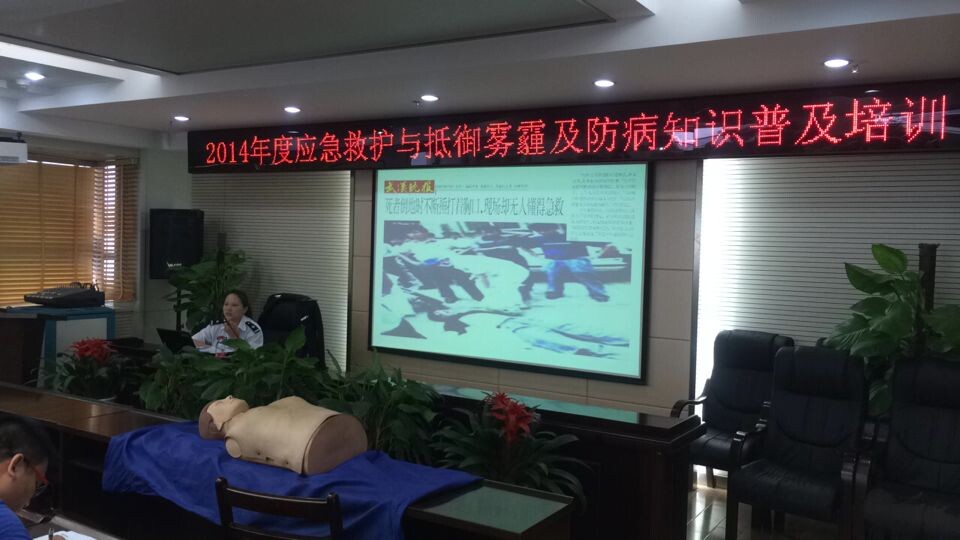 2014年10月18日上午,我公司組織召開了“應(yīng)急救護(hù)與抵御霧霾防病知識普及”專業(yè)培訓(xùn),邀請到湖北全民教育中心的汪主任授課,公司各項(xiàng)目部現(xiàn)場安全員、新員工均參加了本次培訓(xùn)。