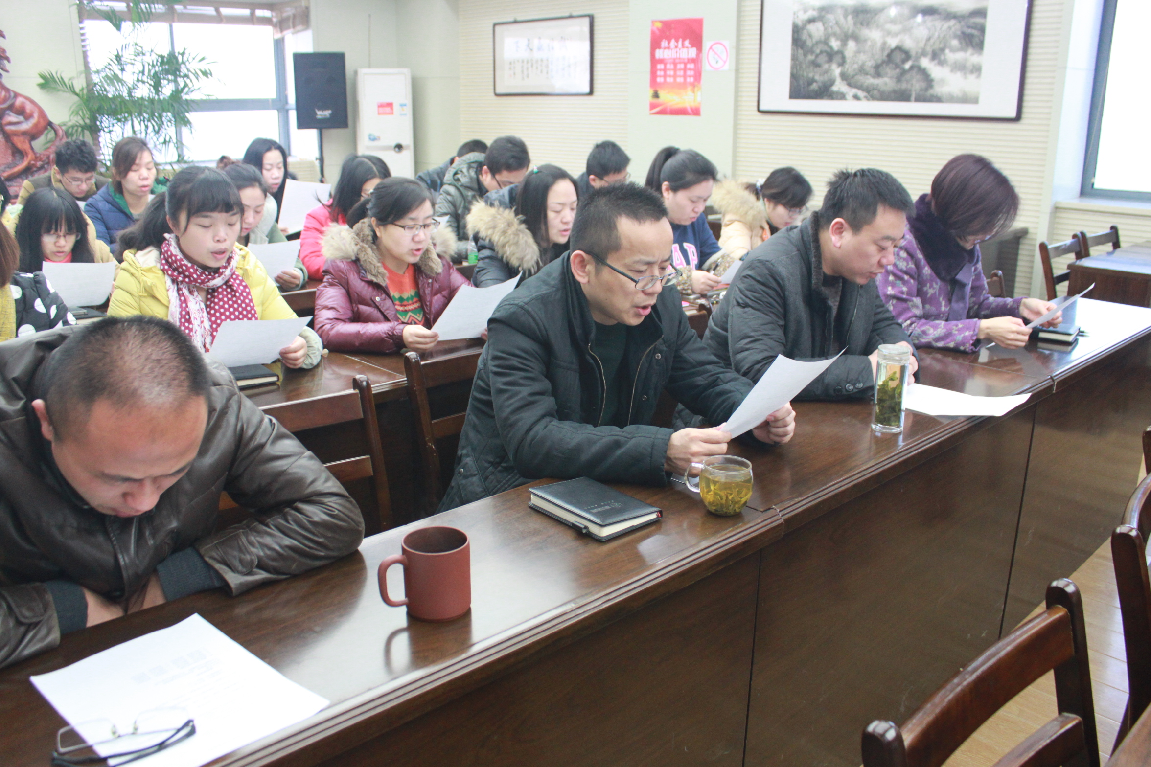 全體職工齊聲朗讀文明創(chuàng)建內(nèi)容