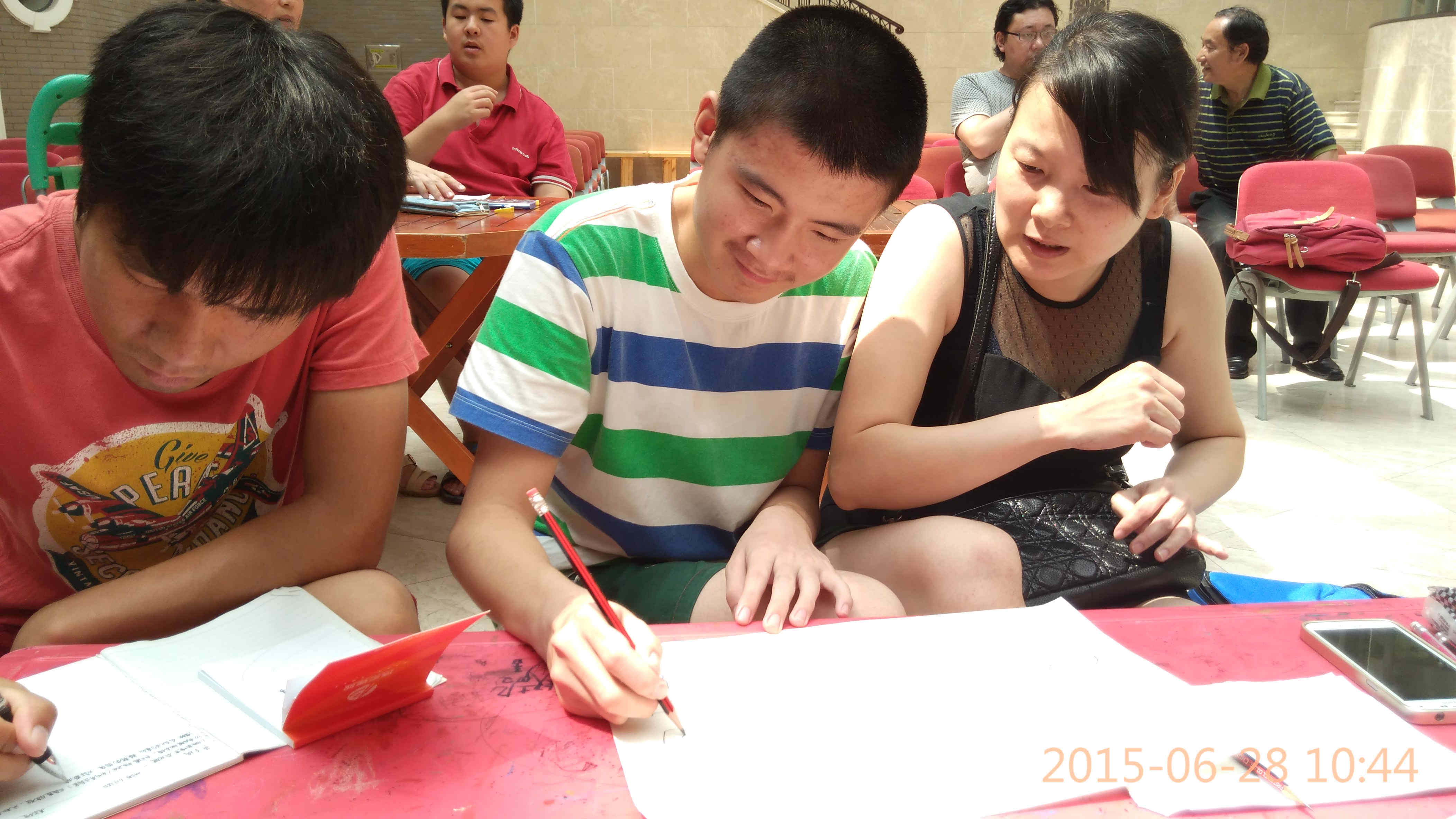 六月的天驕陽(yáng)似火,志愿者們激情滿懷,志愿者們和家長(zhǎng)圍坐在畫桌旁,熱情地與孩子們溝通,幫助他們將完成一幅幅屬于他們自己的畫作,充分運(yùn)用想象力和色彩搭配能力描繪屬于自己的圖案?;顒?dòng)中的自閉癥孩子們無論是否具有繪畫基礎(chǔ),在活動(dòng)過程中都表現(xiàn)得極其專注。他們用圖畫代替語(yǔ)言,用筆尖描繪出自己喜歡的人物、時(shí)裝、風(fēng)景,展現(xiàn)了自閉癥孩子鮮為人知的內(nèi)心世界和他們眼中的愛與美好。