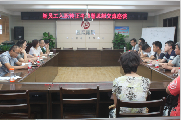 為深入了解見習(xí)期滿轉(zhuǎn)正員工思想動態(tài),傾聽他們對公司發(fā)展、個人成長的意見、期望和訴求,幫助他們理清思路、找準(zhǔn)定位、合理進(jìn)行職業(yè)生涯規(guī)劃,7月14日上午,博宏建設(shè)召集13名2014年入職員工,開展轉(zhuǎn)正員工考核暨思想交流座談會,公司支部成員、總助、工會主席均出席此次座談會。