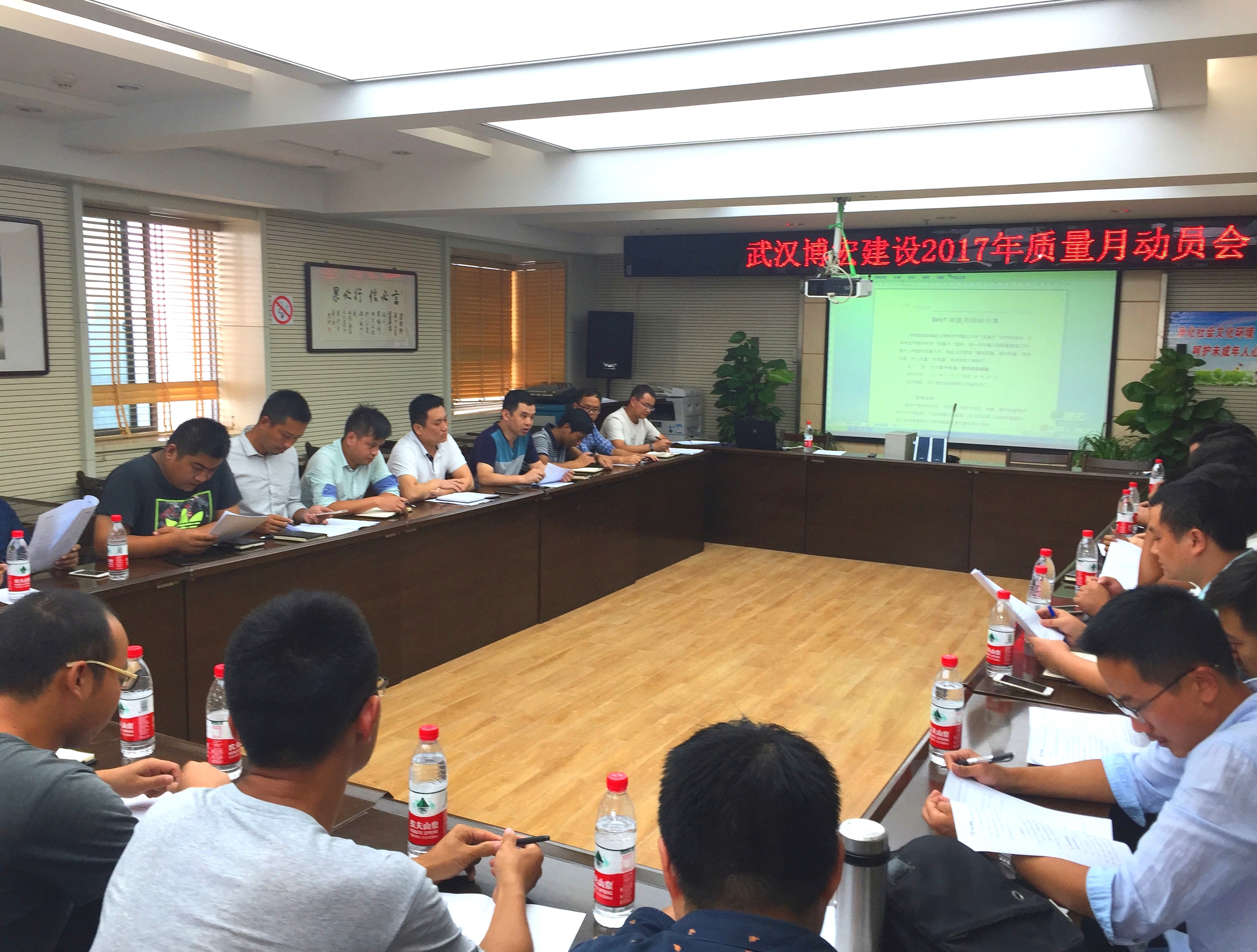 作為建筑施工企業(yè),建筑品質(zhì)是企業(yè)生存與發(fā)展的命脈。為進(jìn)一步提升企業(yè)品質(zhì)意識(shí),踐行“博宏出品,必屬精品”的口號(hào),9月5日下午,博宏建設(shè)2017年度“質(zhì)量月”動(dòng)員會(huì)在公司會(huì)議室正式召開,如火如荼的各項(xiàng)活動(dòng)由此拉開帷幕。