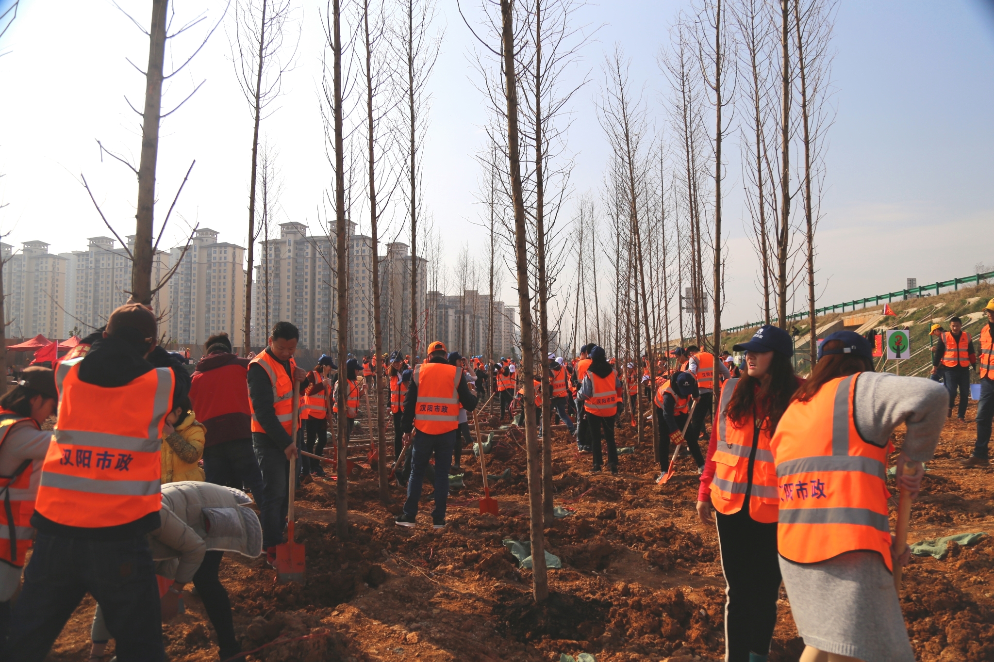 3月11日上午,由武漢市漢陽市政建設(shè)集團(tuán)公司工會、團(tuán)委、質(zhì)檢部聯(lián)合主辦,武漢博宏建設(shè)有限公司承辦的2018“十年樹木,百年樹人”主題植樹活動在“四環(huán)線生態(tài)帶西段(漢陽段)景觀工程項目”現(xiàn)場正式開啟?;顒赢?dāng)天,來自漢陽市政及其各個分子公司、坦達(dá)公司、武漢市市政協(xié)會的共計200余人參加了此次植樹活動。
