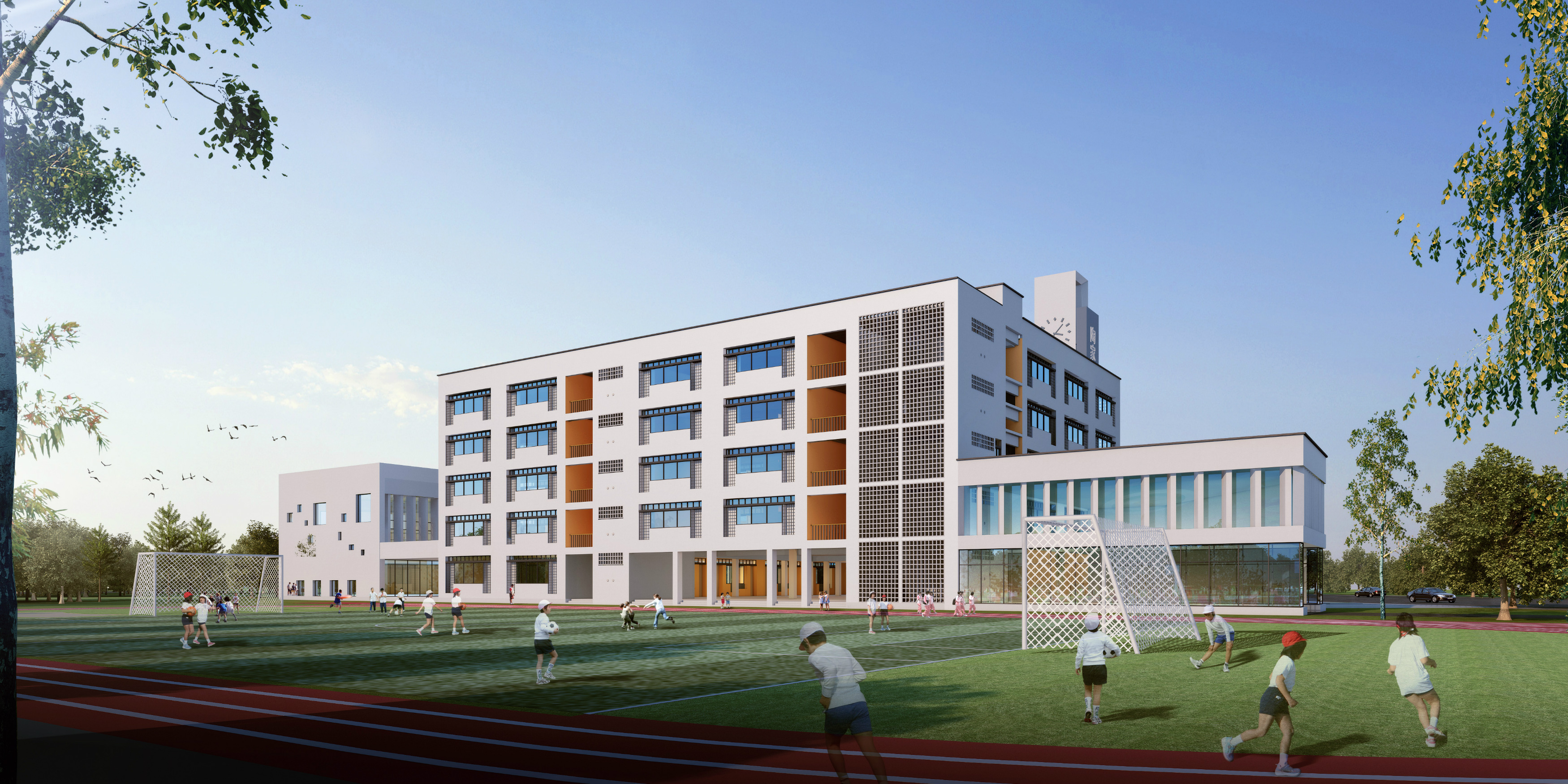 建設(shè)內(nèi)容:六層教學(xué)綜合樓 1 棟,配套建設(shè)學(xué)校大門、道路及停車場、運動場地(含足球場、籃球場、羽毛球場、器械區(qū)、跑道等)、綠化等工程。