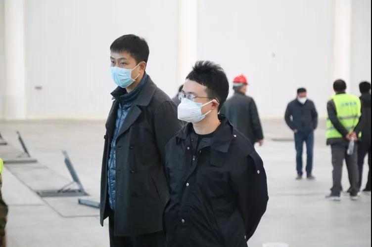 張光(右)在“火神山”項目現(xiàn)場協(xié)調(diào)施工