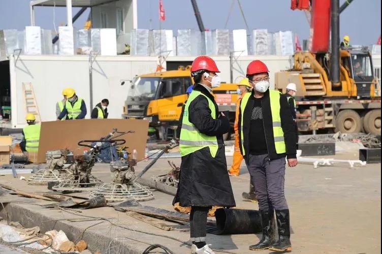 陶文藝(右)在“火神山”項目現(xiàn)場,