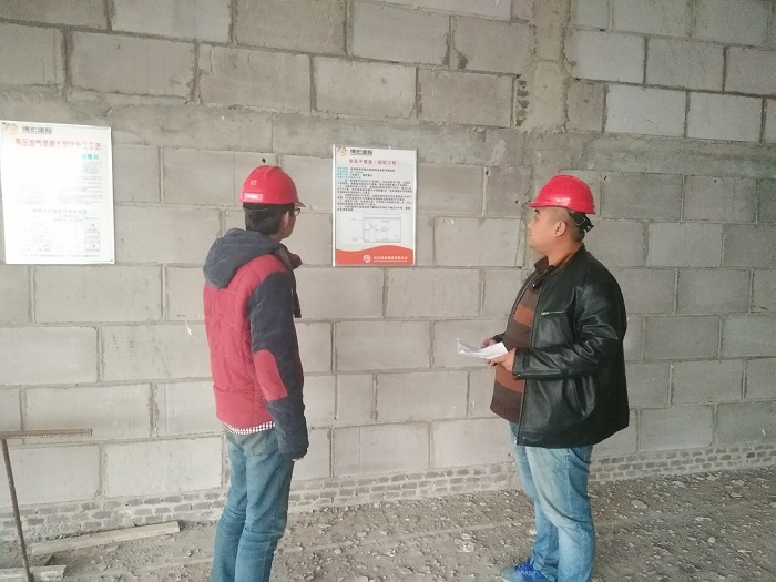 2014年黃金口小學(xué)建設(shè)項(xiàng)目施工單位花落博宏,博宏建設(shè)迎來(lái)第一個(gè)房建自建項(xiàng)目,面對(duì)歷史性的開局,公司領(lǐng)導(dǎo)慎重考慮,最終將這個(gè)艱巨的任務(wù)交付給了劉海軍。為了不辜負(fù)公司領(lǐng)導(dǎo)的期望與信任,為了打響公司房建自建工程的 “第一槍”,他把使命抗在肩,把工作擔(dān)在前,提振精神用那股“嚴(yán)”的精神逼著自己不斷前進(jìn)。由于沒(méi)有房建項(xiàng)目自建經(jīng)驗(yàn)可供借鑒參考,他就結(jié)合自己從基層施工員到項(xiàng)目主管幾年間的工作經(jīng)歷,在摸索中前進(jìn),一路披荊斬棘硬生生闖出一條路。項(xiàng)目部每個(gè)深夜的燈光下都是他忙碌的身影,累了,就抽一根煙,抽完又繼續(xù)工作。