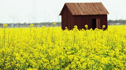 陽春三月,春風(fēng)如沐。桃花紅了、柳葉綠了,長江的水也暖和了。露水吻濕了片片綠葉,整個(gè)江城散發(fā)出如酒似蜜的清香。田里金黃的油菜花,成了蝴蝶的天地,美麗的蝴蝶在金黃色的舞臺上跳著柔和而優(yōu)美的舞姿,偶爾一陣微風(fēng)吹來,油菜花立刻涌起了高低起伏的“金浪花”,遠(yuǎn)遠(yuǎn)望去,令人美不勝收!——這是我記憶中的春天油菜花地。