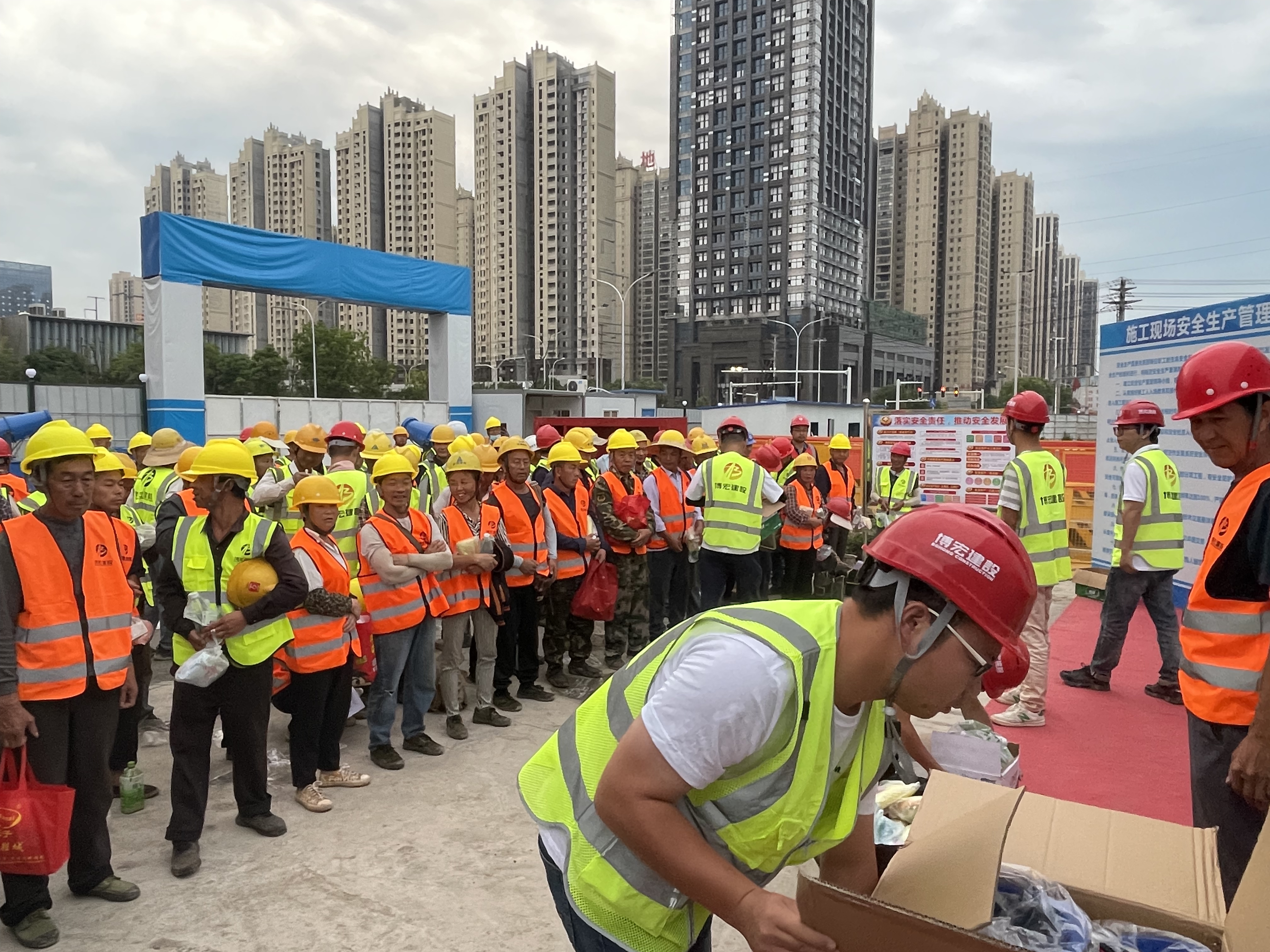 6月19日下午4點(diǎn),“送法進(jìn)工地”普法宣傳活動(dòng)在漢陽市政大廈項(xiàng)目部舉辦。活動(dòng)現(xiàn)場(chǎng)通過懸掛橫幅、發(fā)放普法書籍、法律咨詢等形式向在場(chǎng)的農(nóng)民工、項(xiàng)目一線員工宣傳與安全生產(chǎn)、農(nóng)民工權(quán)益保護(hù)相關(guān)的基本知識(shí)。