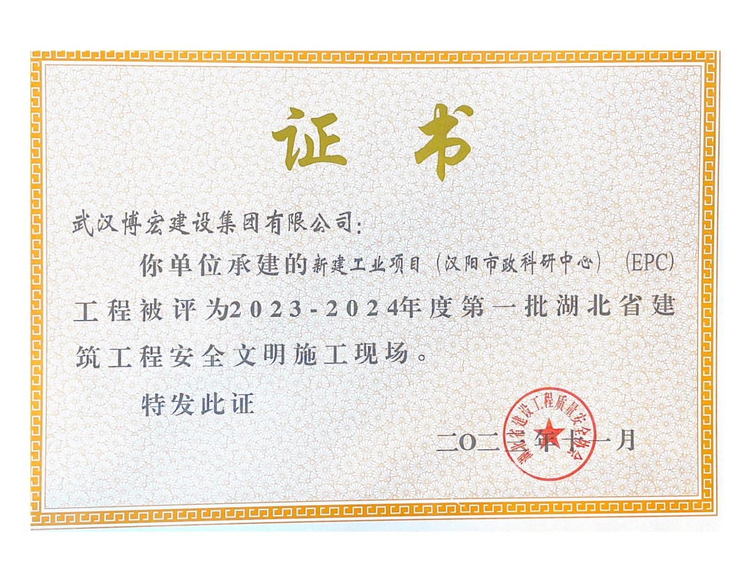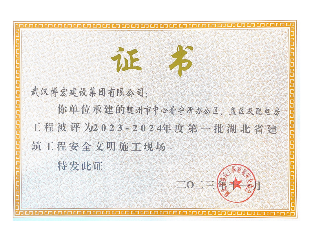 近日,湖北省建設(shè)工程質(zhì)量安全協(xié)會公布了2023-2024年度第一批湖北省建筑工程安全文明施工現(xiàn)場名單,由博宏建設(shè)集團承建的隨州市中心看守所辦公區(qū)、監(jiān)區(qū)及配電房;黃金口產(chǎn)業(yè)園商業(yè)設(shè)施、居住、公園綠地建設(shè)項目;新建工業(yè)項目(漢陽市政科研中心)(EPC)等8項工程獲評湖北省建筑工程安全文明施工現(xiàn)場。