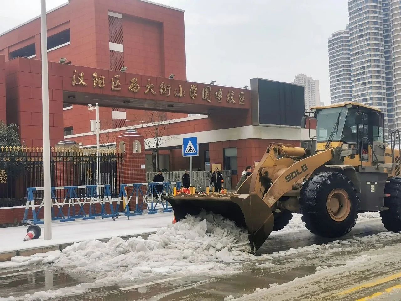 本次應(yīng)急行動累計出動61人次,鏟車14臺,巡查車輛7臺,撒鹽車輛3臺,撒融雪劑0.5噸,共對五里墩小學(xué)、翠微中學(xué)、七里小學(xué)、武漢市第三中學(xué)、西大街至誠小學(xué)、墨水湖小學(xué)東校區(qū)等八所學(xué)校道路的積雪進(jìn)行了清理,并鏟除路面結(jié)冰。