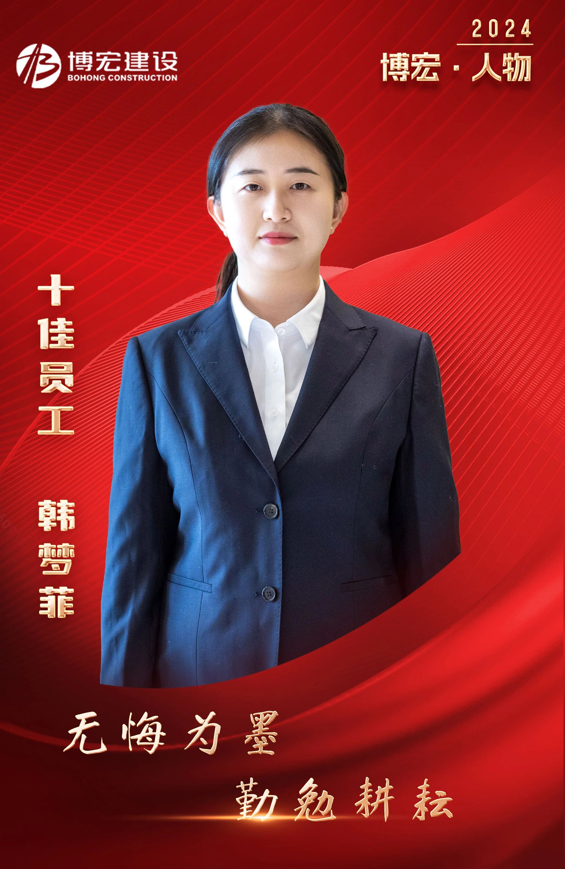 韓夢菲,黨建宣傳崗,入職博宏近2年,主導(dǎo)策劃了多次專題宣傳活動(dòng),讓宣傳思想工作更有滲透力、說服力、吸引力,逐步成長成為宣傳思想文化戰(zhàn)線上的骨干,榮獲博宏建設(shè)集團(tuán)2023年度“十佳員工”。從宣傳專員到黨建專員,崗位轉(zhuǎn)變,但服務(wù)業(yè)務(wù)部門,為公司賦能的初心不變。