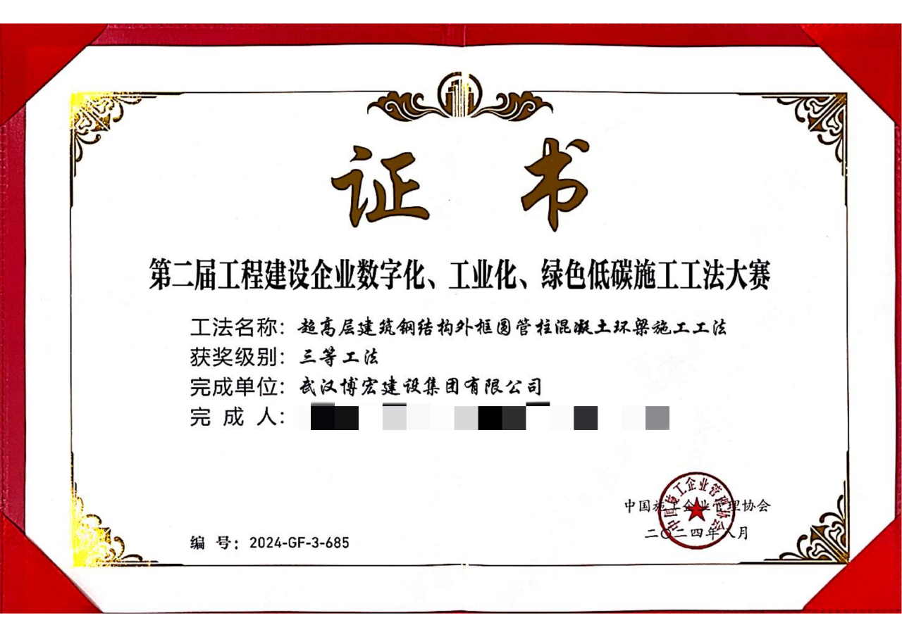 這些獎項的獲得,是對公司堅定不移走科技創(chuàng)新發(fā)展之路的有力印證。未來,博宏建設集團將更加重視工法、微創(chuàng)新成果的轉化與應用,持續(xù)激發(fā)技術人員創(chuàng)新活力,加快發(fā)展新質生產力,不斷提升技術實力和核心競爭力,為高質量可持續(xù)發(fā)展提供有力技術支撐。